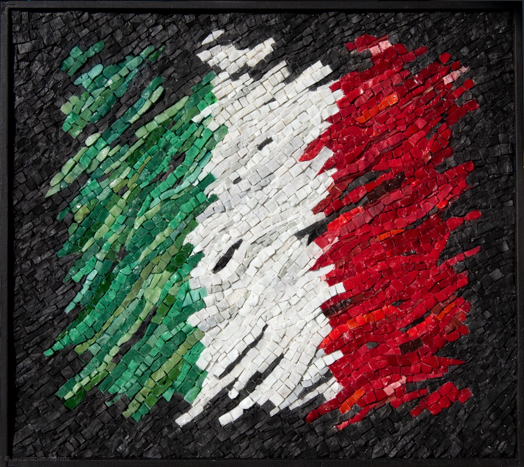 Ogni opera ha una sua storia, un suo percorso, ogni opera è intrisa dei sentimenti provati nel crearla, perché il mosaico è una arte lentissima, non da scampo, sei tu e lei, per giorni e giorni.